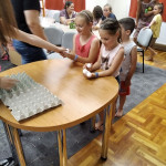 A két mese, a szelektív hulladékgyűjtés fontosságára, környezetünk tisztántartására hívta fel a gyermekek figyelmét. A mese alapja volt az újrahasznosított anyagokból készült, ügyességi játszótér kialakításának. Pályáink leküzdésében szívesen vettek részt a gyerekek. Mindenki kipróbálhatta akadályainkat. A vidám délelőtt második részében kézműves foglalkozás keretében a gyerekek saját társasjátékot készíthettek és vihettek haza. Szebbnél-szebb alkotások születtek.
